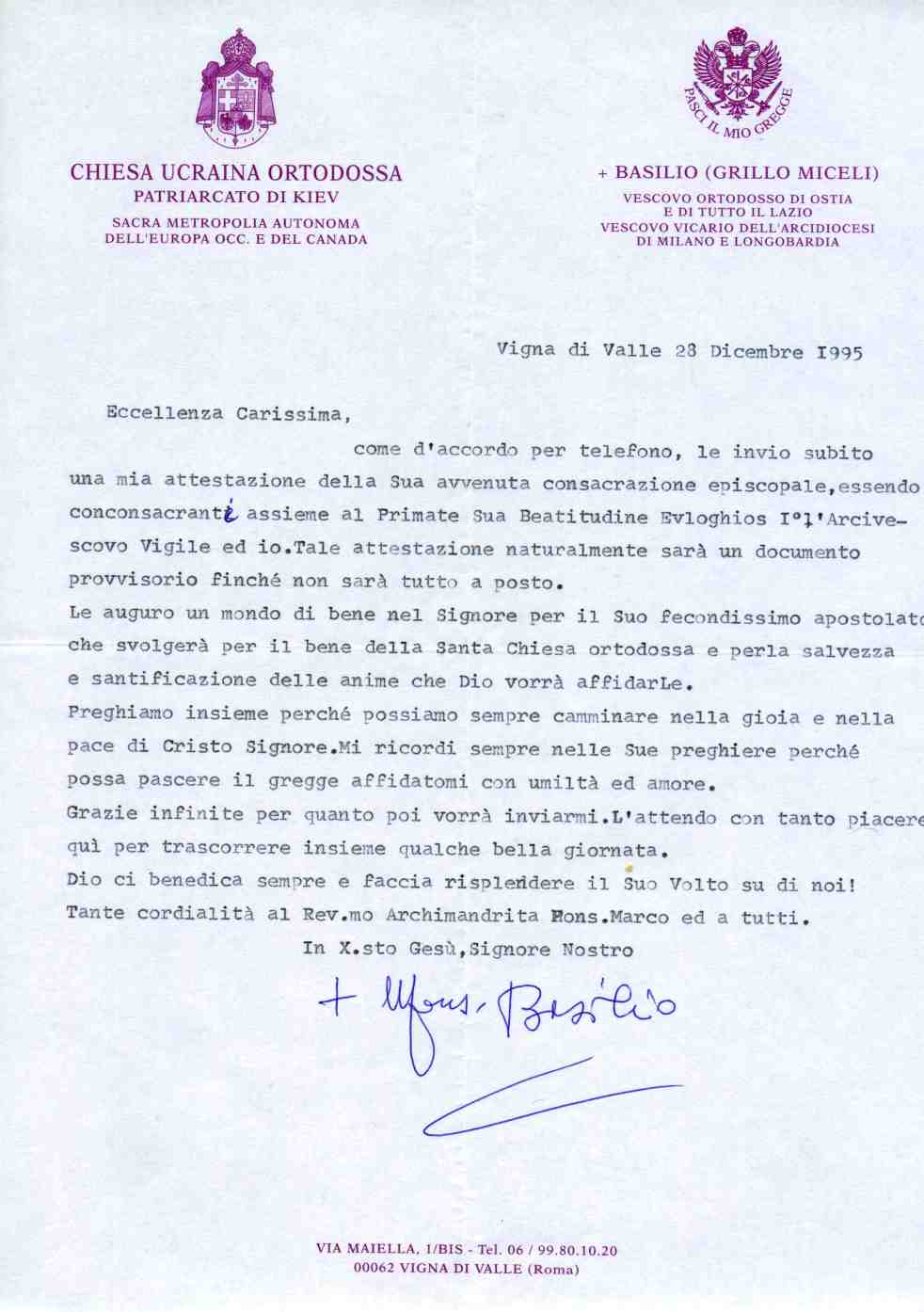 • SUA BEATITUDINE BASILIO E LA CHIESA ORTODOSSA D’ITALIA