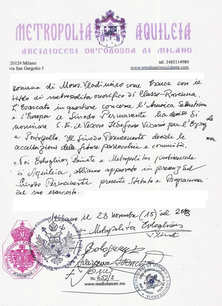• ESARCATO ORTODOSSO D’ITALIA E SVIZZERA / УКРАЇНСЬКИЙ ПРАВОСЛАВНИЙ ЕКСАРХАТ ІТАЛІЇ ТА ШВЕЙЦАРІЇ