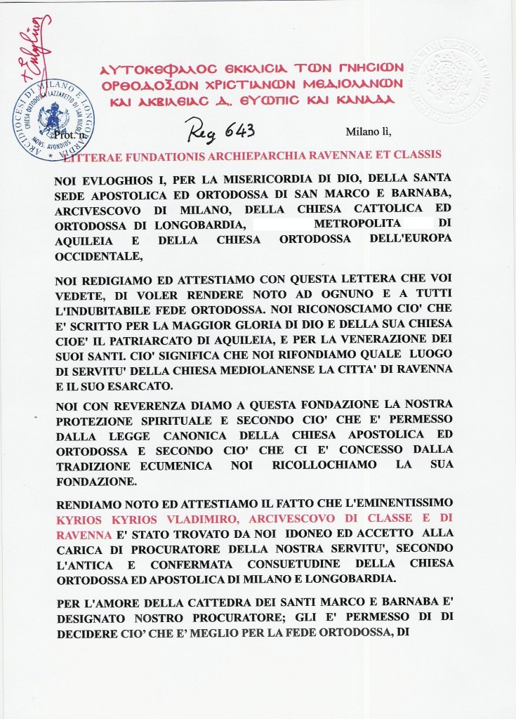 • ESARCATO ORTODOSSO D’ITALIA E SVIZZERA / УКРАЇНСЬКИЙ ПРАВОСЛАВНИЙ ЕКСАРХАТ ІТАЛІЇ ТА ШВЕЙЦАРІЇ
