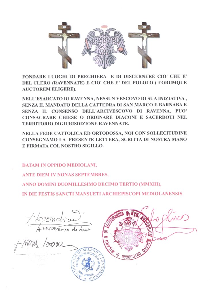 • ESARCATO ORTODOSSO D’ITALIA E SVIZZERA / УКРАЇНСЬКИЙ ПРАВОСЛАВНИЙ ЕКСАРХАТ ІТАЛІЇ ТА ШВЕЙЦАРІЇ
