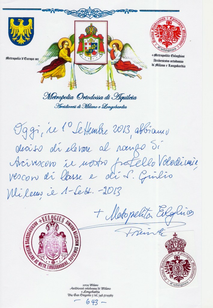 • SUA BEATITUDINE BASILIO E LA CHIESA ORTODOSSA D’ITALIA