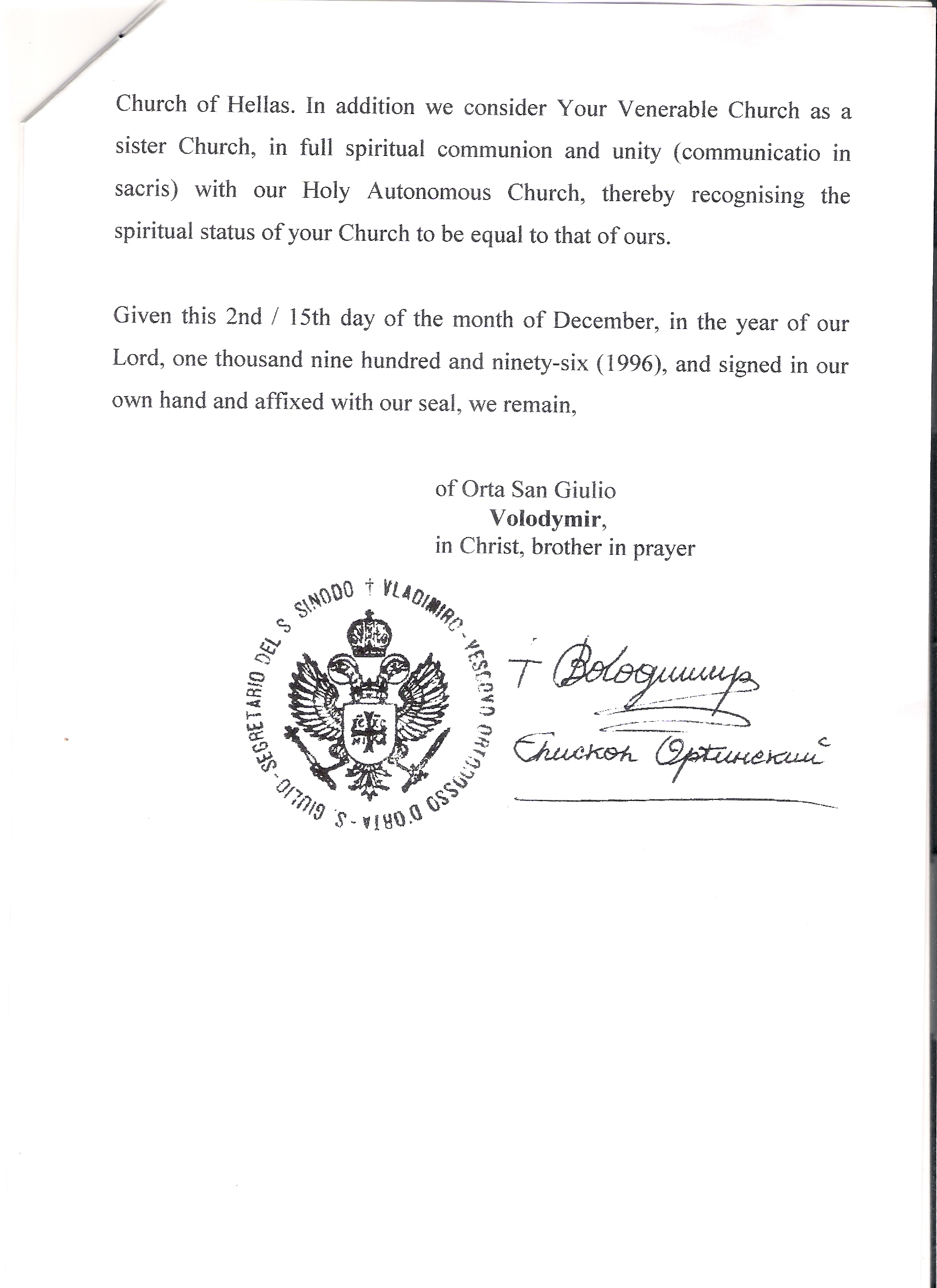 • A – Єпископи КИЇВСЬКОГО ПАТРІАРХАТУ ЗАХІДНІЙ ЄВРОПІ 1996
