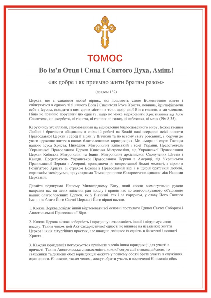 • ІСТОРИЧНІ ДОКУМЕНТИ ПРАВОСЛАВНА ЦЕРКВА УКРАЇНИ