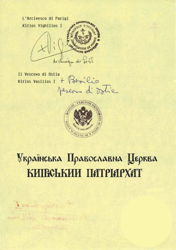 • A – Єпископи КИЇВСЬКОГО ПАТРІАРХАТУ ЗАХІДНІЙ ЄВРОПІ 1996