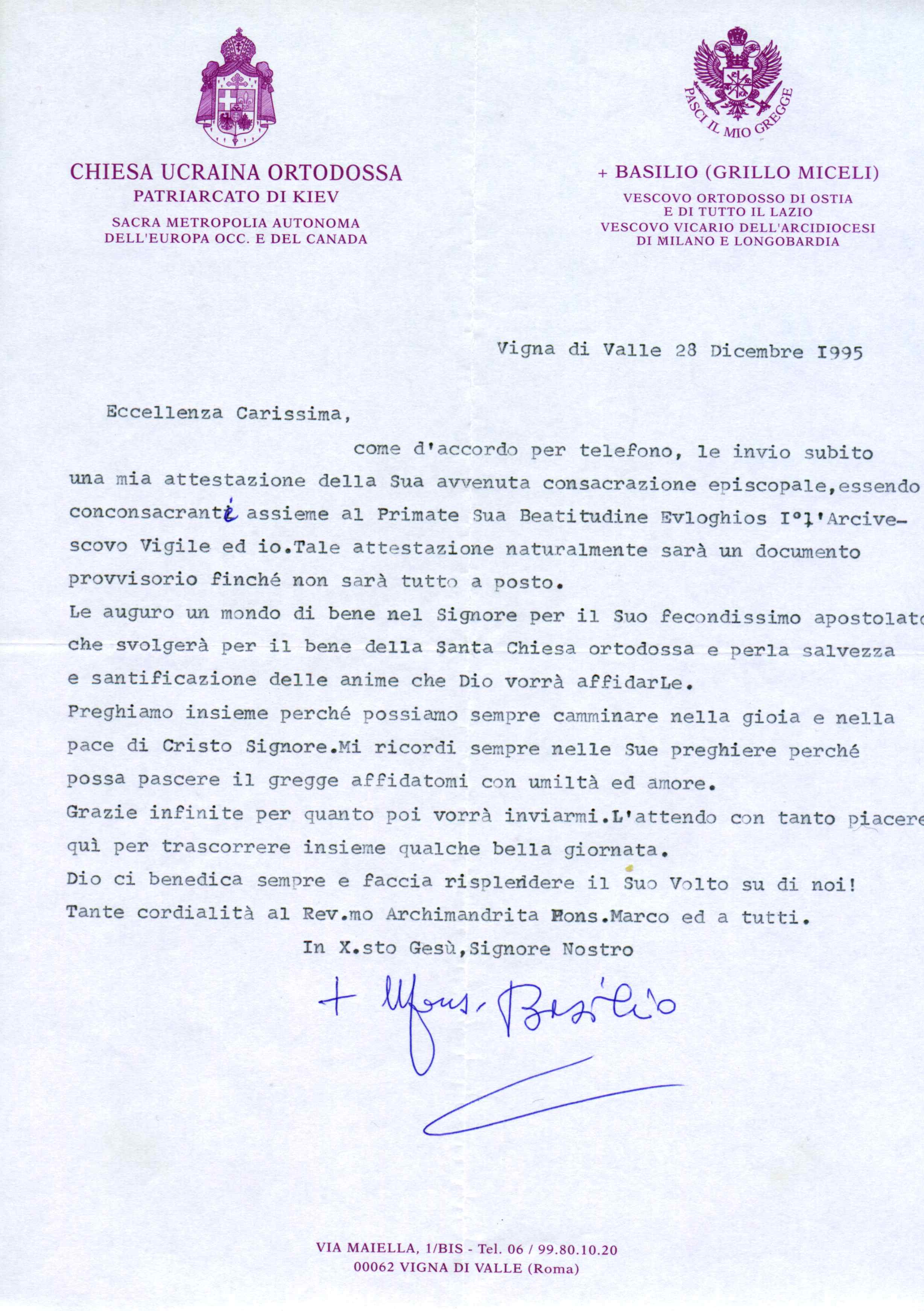 Documento consacrazione – lettera di basilio