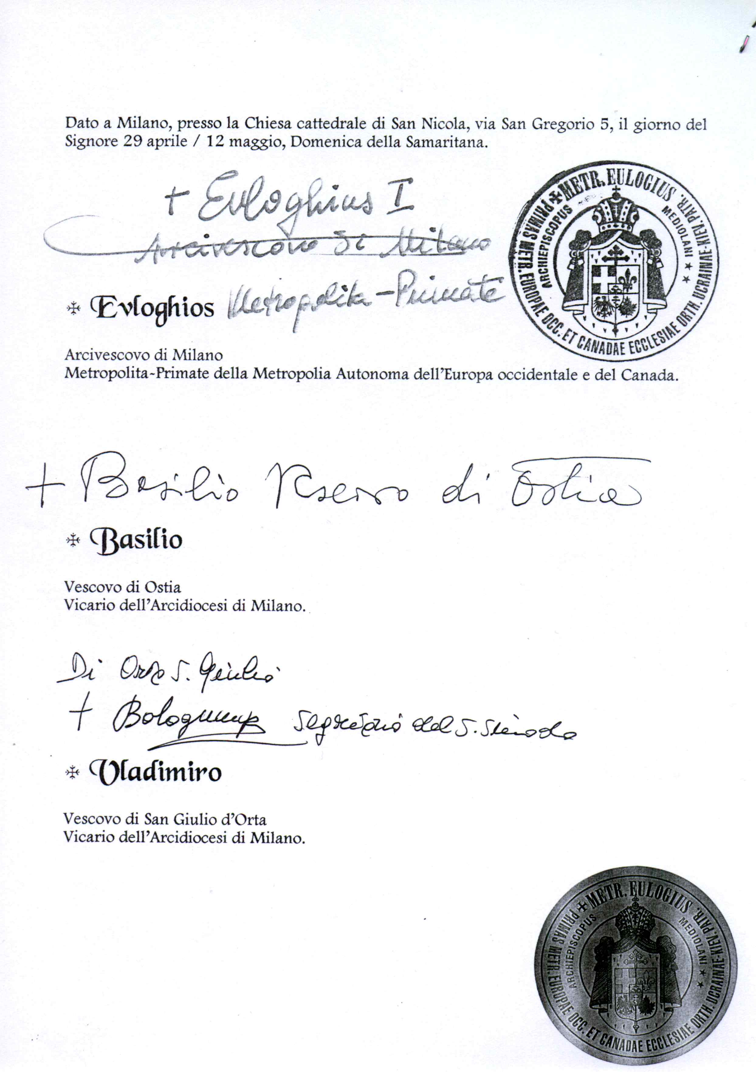 • ESARCATO ORTODOSSO D’ITALIA E SVIZZERA / УКРАЇНСЬКИЙ ПРАВОСЛАВНИЙ ЕКСАРХАТ ІТАЛІЇ ТА ШВЕЙЦАРІЇ