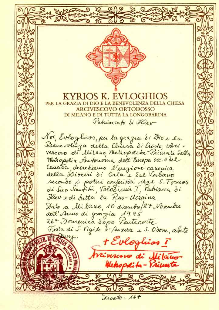 • ESARCATO ORTODOSSO D’ITALIA E SVIZZERA / УКРАЇНСЬКИЙ ПРАВОСЛАВНИЙ ЕКСАРХАТ ІТАЛІЇ ТА ШВЕЙЦАРІЇ