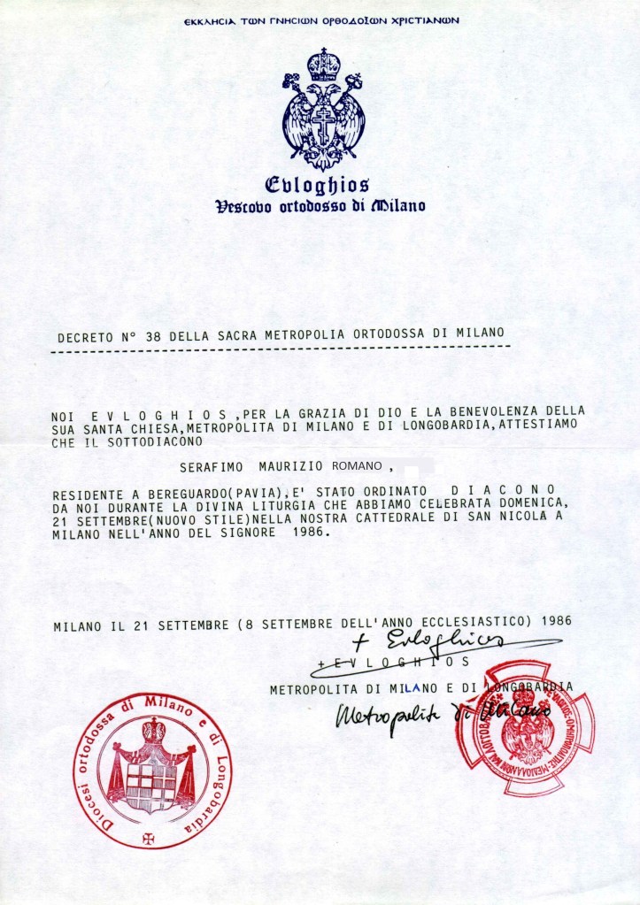 • ESARCATO ORTODOSSO D’ITALIA E SVIZZERA / УКРАЇНСЬКИЙ ПРАВОСЛАВНИЙ ЕКСАРХАТ ІТАЛІЇ ТА ШВЕЙЦАРІЇ
