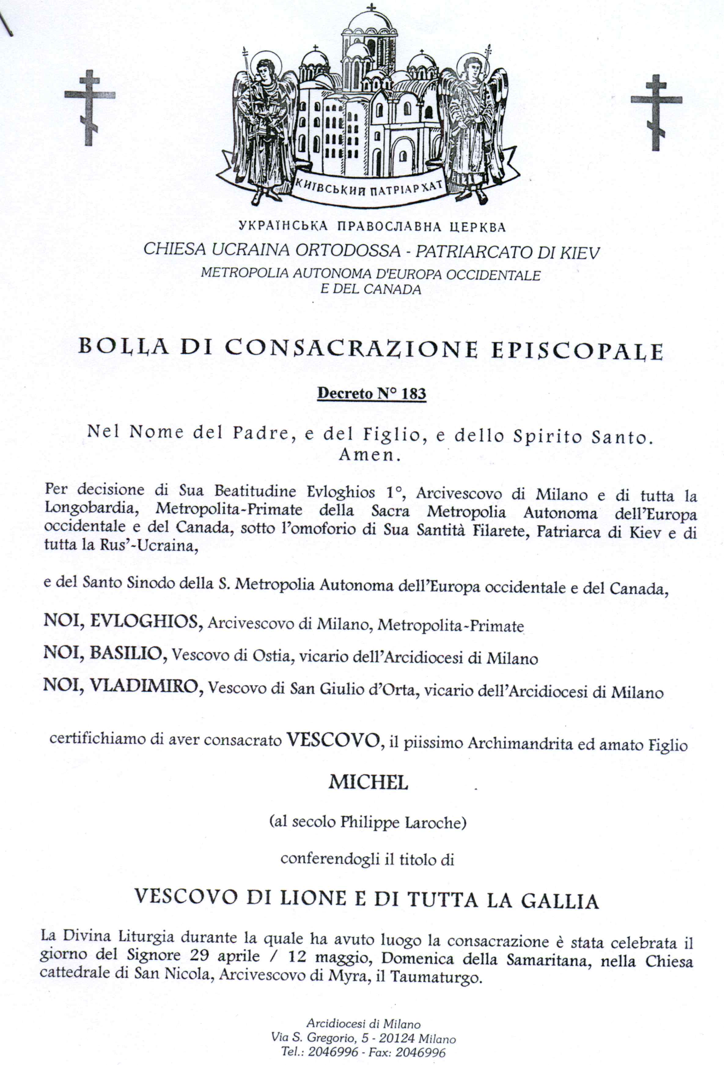 • ESARCATO ORTODOSSO D’ITALIA E SVIZZERA / УКРАЇНСЬКИЙ ПРАВОСЛАВНИЙ ЕКСАРХАТ ІТАЛІЇ ТА ШВЕЙЦАРІЇ