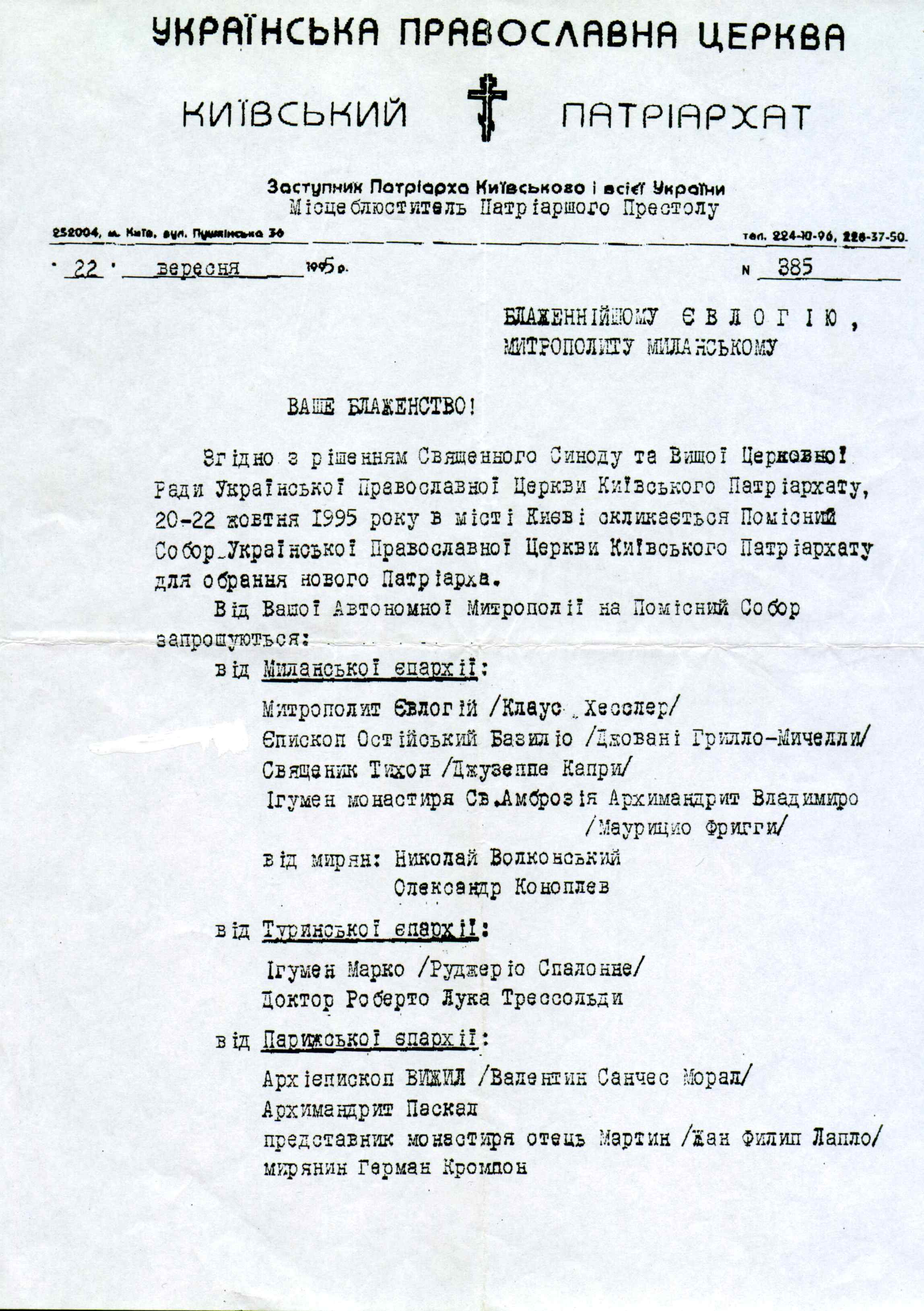 • A – Єпископи КИЇВСЬКОГО ПАТРІАРХАТУ ЗАХІДНІЙ ЄВРОПІ 1995